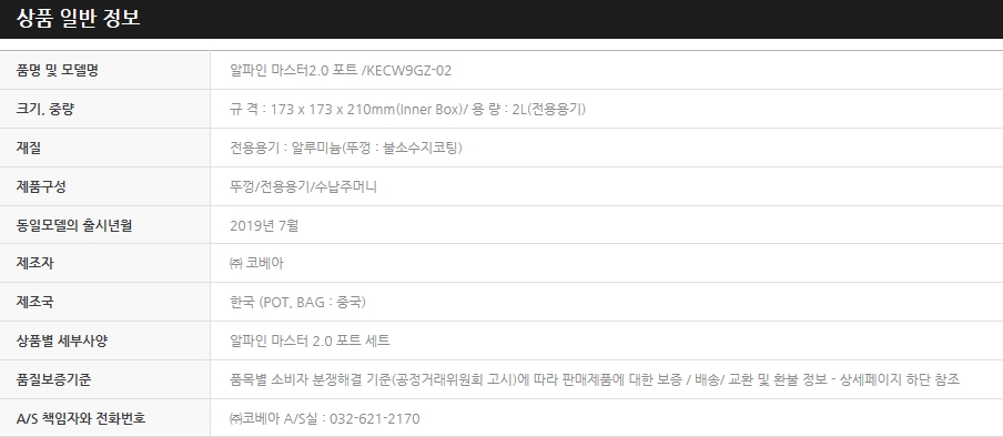 > 알파인 마스터 2.0 포트(버너별도)