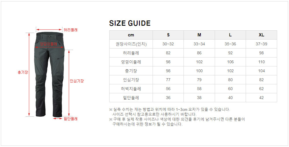 Item size chart 사이즈 기준표