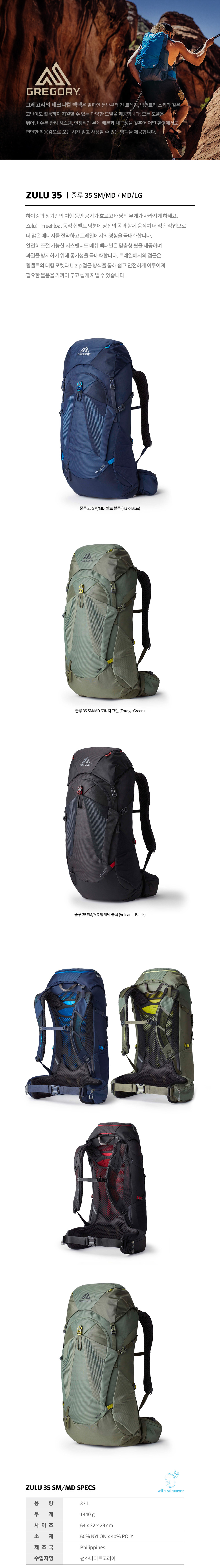 > 줄루 35L - Volcanic Black (레인커버 포함)