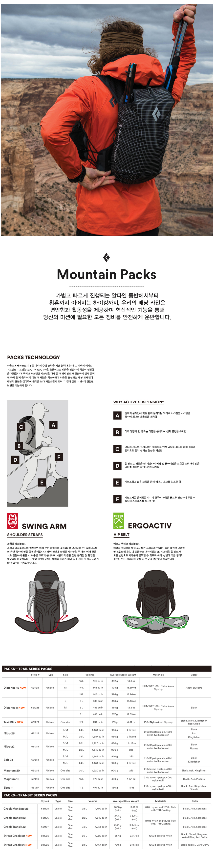 - 유선형의 어깨 끈과 공기 순환이 뛰어난 등판