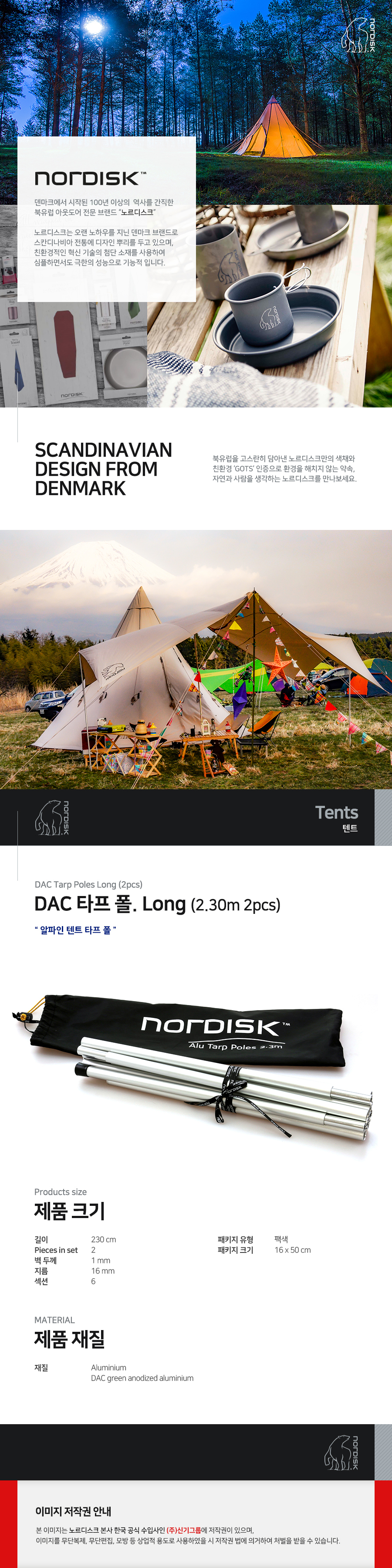 DAC 타프 폴. Long (2.30m 2pcs)