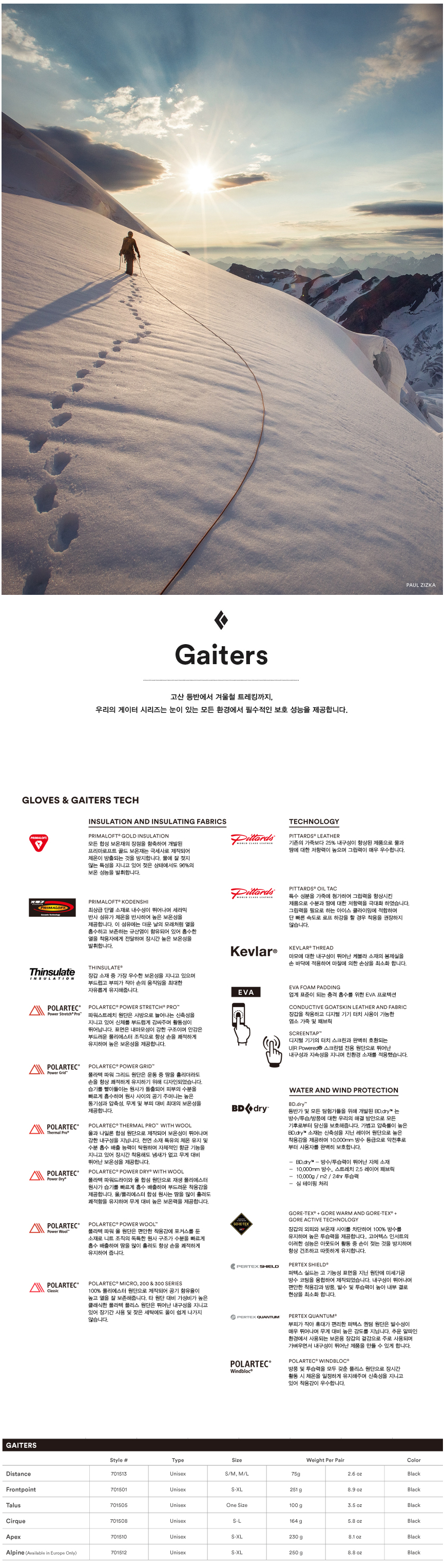 블랙다이아몬드 에이펙스 게이터는 3레이어 고어텍스 원단을 적용한 높은 길이의 게이터로 알파인 등반 및 스키 마운티니어링과 같이 혹한의 날씨에 탁월한 성능을 발휘합니다.