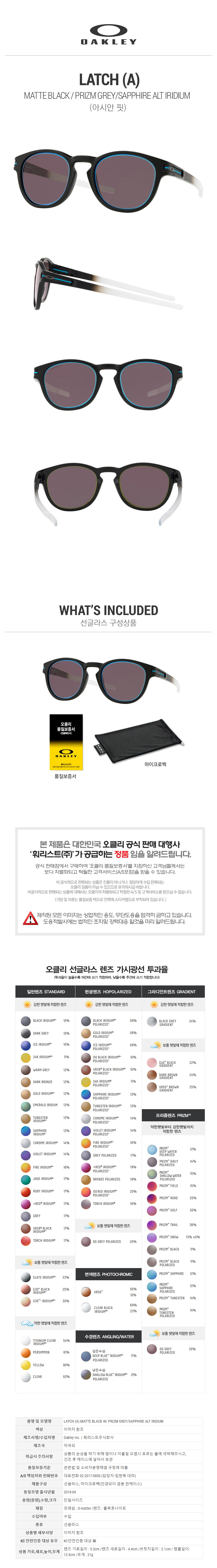 래치 OO9349-17 [프리즘] 매트 블랙 W/프리즘 그레이/사파이어 ALT 이리듐 아시안핏
