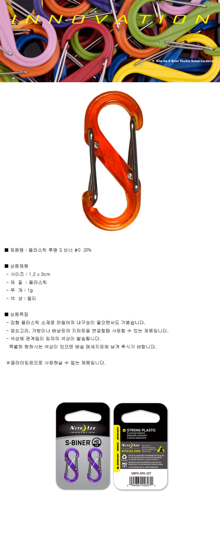 플라스틱 투명 S 비너 #0 2Pk