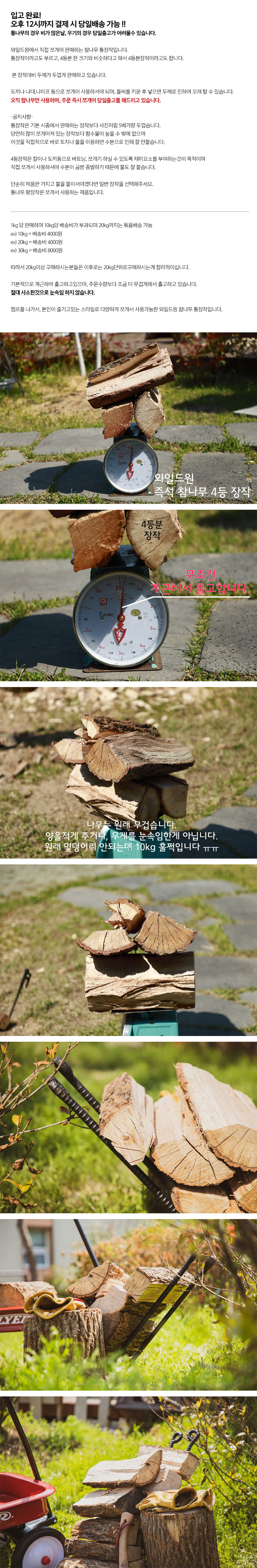 참나무 통장작 1kg / 4등분장작 / 큰장작 / 왕장작 / 참나무