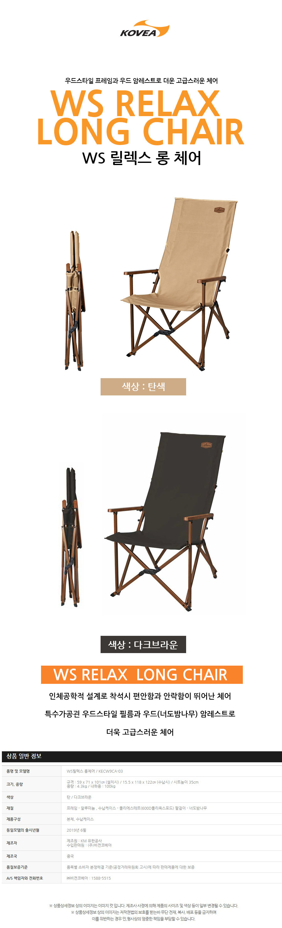 WS 릴렉스 롱 체어 / 우드체어 - 다크브라운