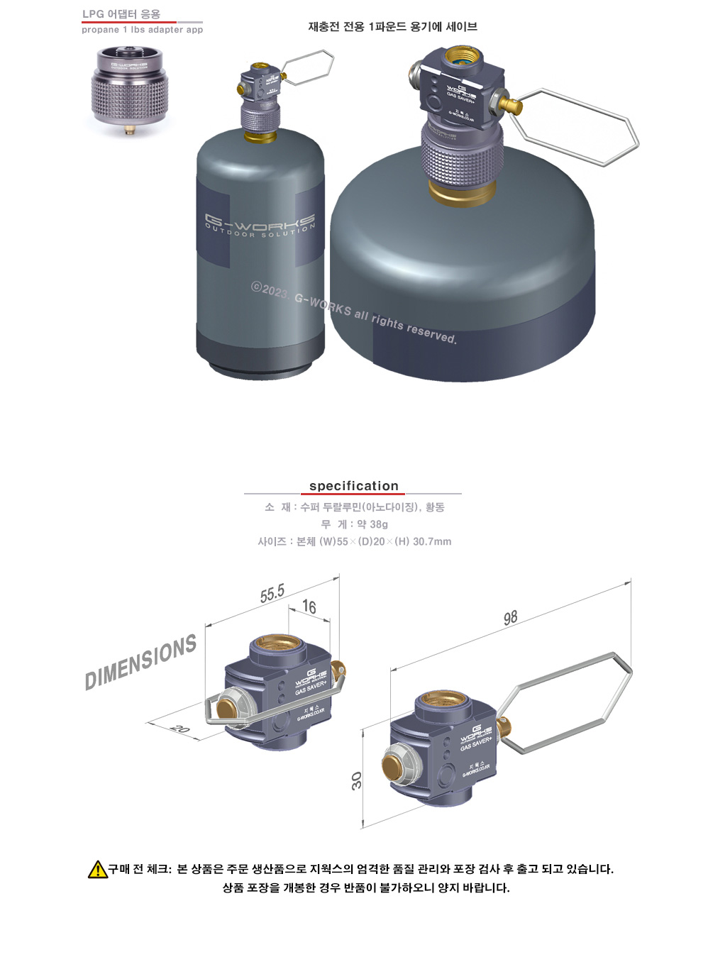구매하기 + 추가 옵션 선택 부탄어댑터 옵션 선택 수직형 1개(+10,000) 수직형 2개(+20,000) 액출방지형 1개(+12,000) 액출방지형 2개(+24,000) 0 원 장바구니 구매하기