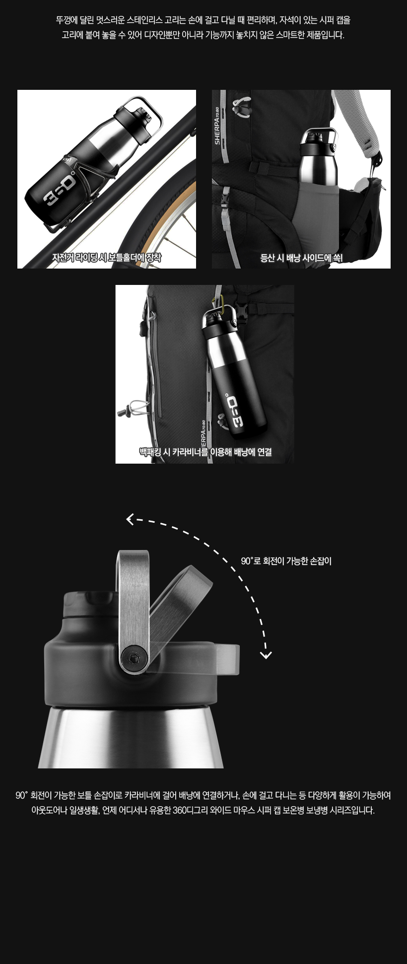 와이드 마우스 시퍼 캡 1리터 블랙 보온병 보냉병