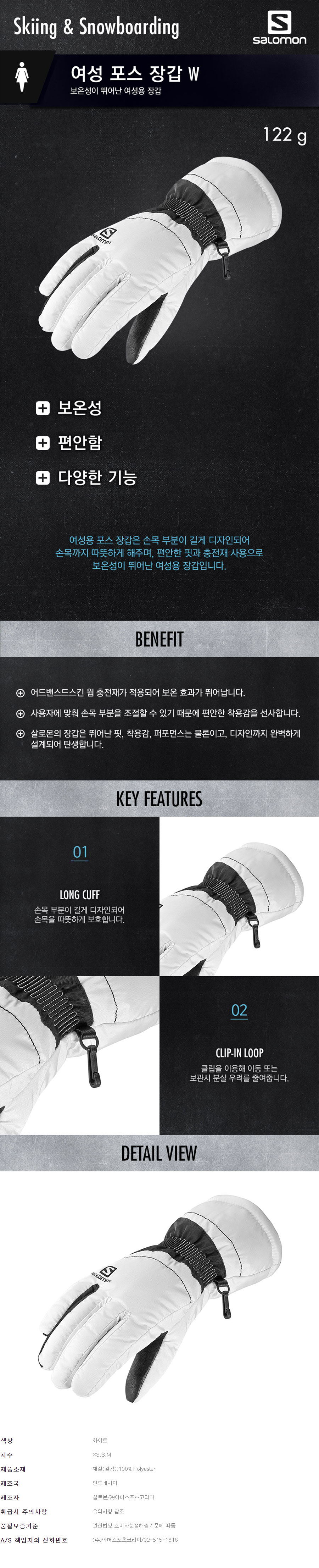 여성 포스 장갑 W