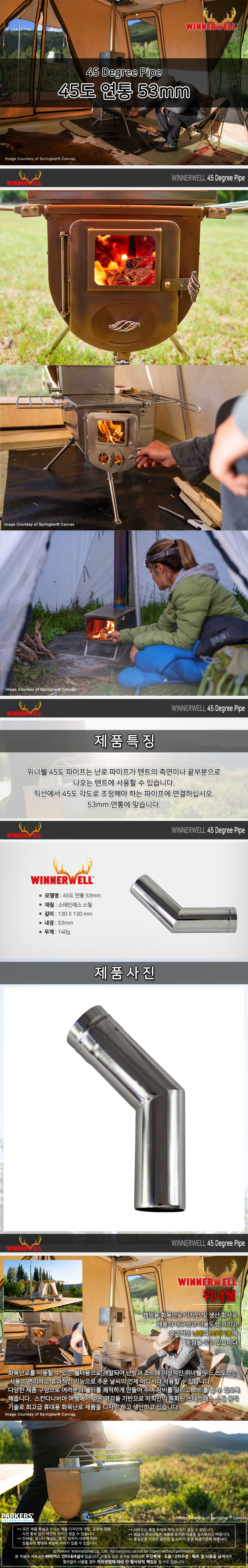 캠핑용 화목난로 스테인레스 45도 연통 53mm