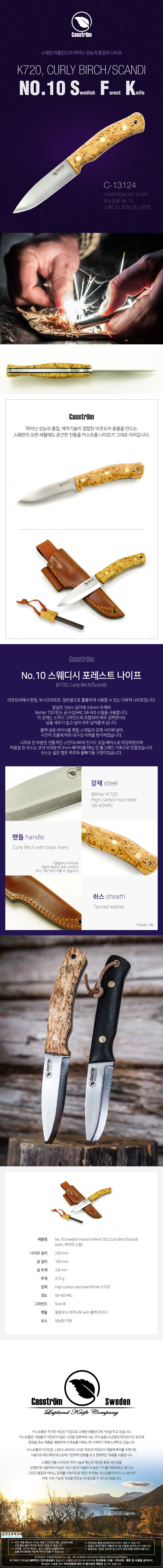 No.10 스웨디시 포레스트 나이프 캠핑용 칼 (K720 강재 / 자작나무 핸들) (파이어스틸 포함) (C-13124)