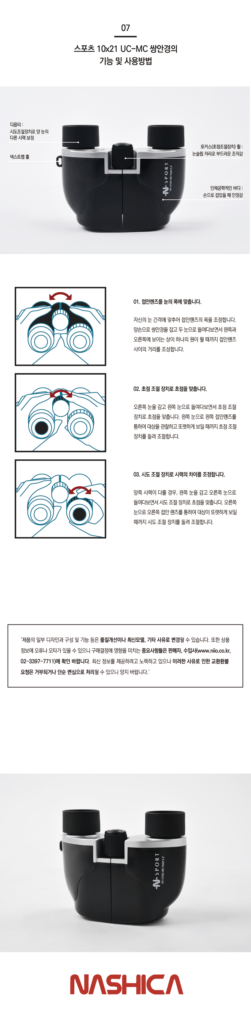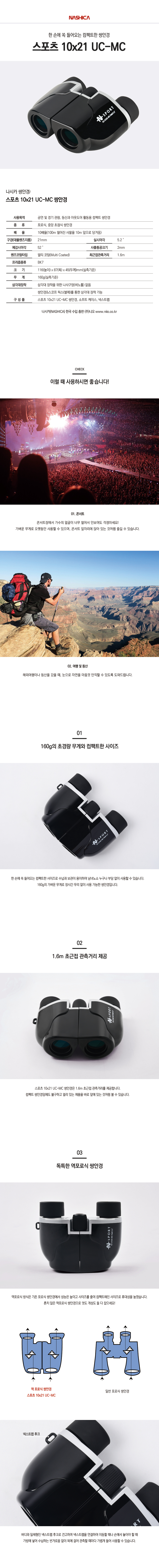 쌍안경&스코프 픽스(별매)를 통한 삼각대 장착 가능 구성품 : 스포츠 10x21 UC-MC 쌍안경, 소프트 케이스, 넥스트랩