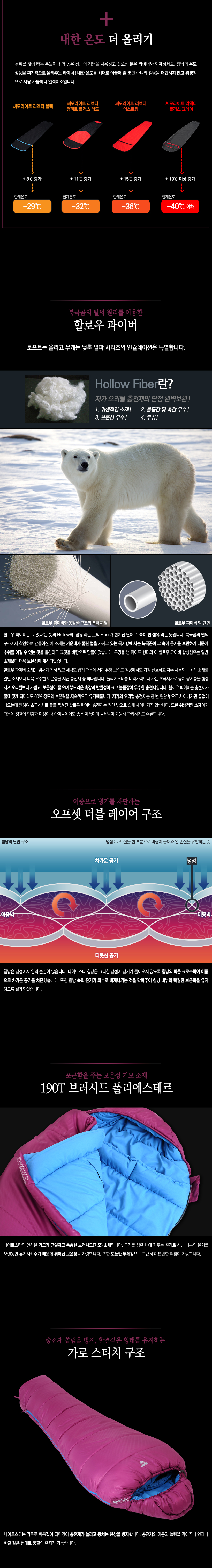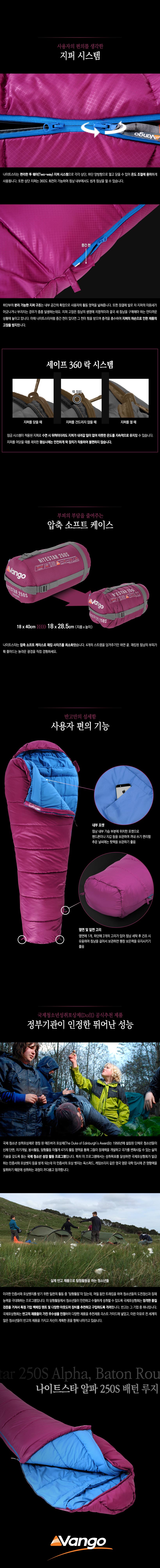 - 온도성능 : -21˚C 이상 사용 침낭 - 구분온도 : 한계-21˚C | 적정 -4˚C | 쾌적 +2˚C - 무게 : 1.36kg(실측기준) - 펼친크기 : 205(길이) x 80(어깨) x 50(넓이)cm(실측기준) - 수납크기 : 압축 전 - 18(지름) x 40(길이)cm(실측기준) 압축 후 - 18(지름) x 28.5(길이)cm(실측기준) - 충전재 : 알파 인슐레이션 할로우 파이버 - 스티치방식 : 오프셋 더블월 구조 - 재질 : 폴에어 다이아몬드 셀 / 190T 브러시드 폴리에스테르 100% - 권장신장 : 180cm 이하 - 지퍼형태 : 좌측 이중 지퍼, 세이프 듀얼 락 지퍼 침낭 내부에서도 자유롭게 지퍼를 여닫을 수 있음 - 보온구조 : 오프셋 더블 레이어 구조 열 손실을 방지하는 3D 후드와 드로우 코드 열 손실을 막아주는 윈드블럭 보온력 유지에 탁월한 머미형 구조 - 케이스 : 압축 케이스 - 특징 : * 국제청소년성취포상제(DofE) 공식추천 제품 * 영국 스카우트 협회의 공식 인정받은 우수한 성능 * 내구성을 높이고 추가로 따뜻하게 하기 위한 잠재력 로프트를 극대화하며 습한 상태에서도 로프트를 유지하는 할로우 파이버 충전재 * 충전재가 뭉치지 않도록 가로 스티치 처리 * 지퍼가드 처리로 안감이 물리지 않음 * 실용적인 침낭 내부 수납주머니로 지갑, 휴대폰, 후레쉬 및 기타 주요 물품 등 보관 가능 * 체스트 윈드블럭이 있어 외부에서 들어오는 바람을 차단해주며 드로우 코드로 체형에 맞게 조절 가능 * 침낭을 보관/건조할 때 편리한 하단부 고리 * 유럽규격 EN13537에 준하는 훌륭한 성능 - 구성품 : 나이트스타 알파 250S 배턴 루지 침낭, 압축 케이스