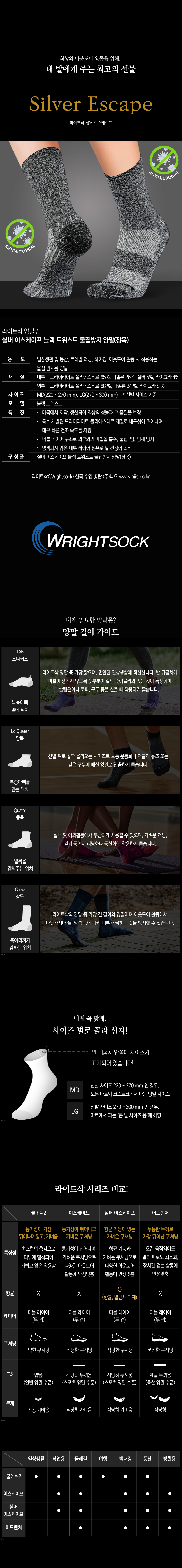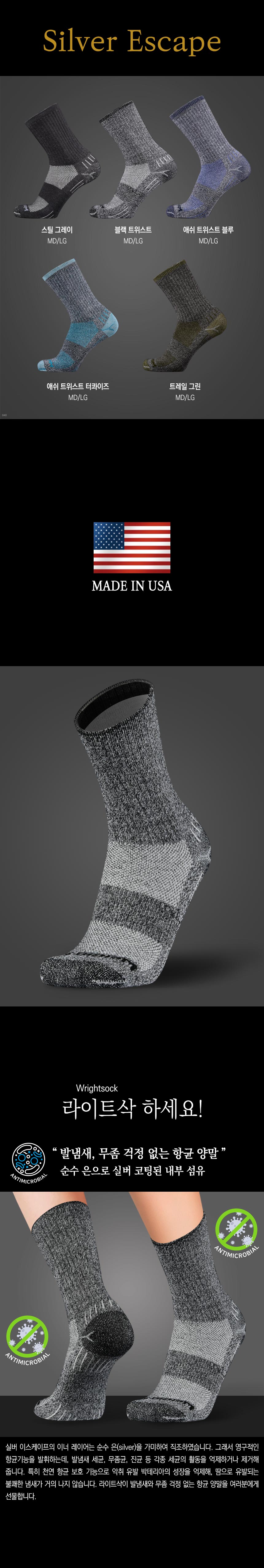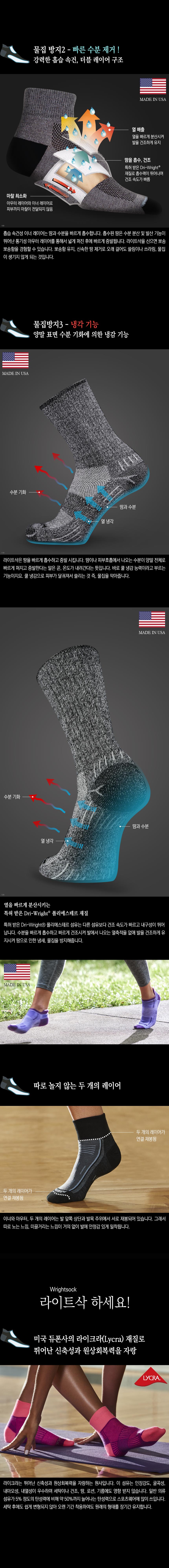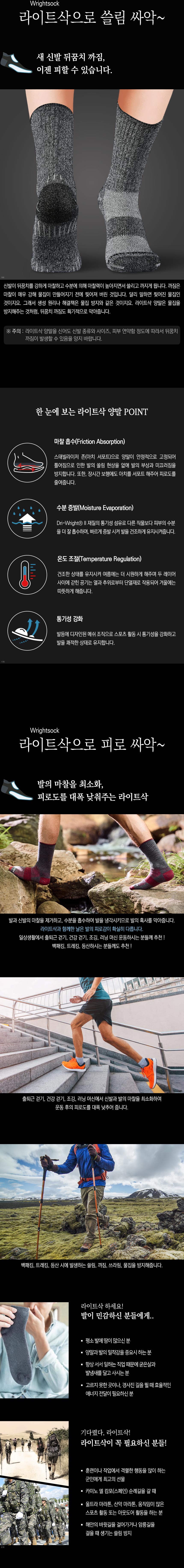 용도: 일상생활 및 등산, 트레일 러닝, 하이킹, 아웃도어 활동 시 착용하는 물집 방지용 양말 재질: 내부 - 드라이라이트 폴리에스테르 65%, 나일론 26%, 실버 5%, 라이크라 4% 외부 - 드라이라이트 폴리에스테르 68%, 나일론 24%, 라이크라 8% 사이즈: MD(220 ~ 270 mm), LG(270 ~ 300 mm) * 신발 사이즈 기준 모델: 블랙 트위스트 특징: - 미국에서 제작, 생산되어 최상의 성능과 그 품질을 보장 - 특수 개발된 드라이 라이트 폴리에스테르 재질로 내구성이 뛰어나며 매우 빠른 건조 속도를 자랑 - 더블 레이어 구조로 외부와의 마찰을 흡수, 물집, 땀, 냄새 방지 - 염색되지 않은 내부 레이어 섬유로 발 건강에 최적 구성품: 실버 이스케이프 블랙 트위스트 물집방지 양말(장목)