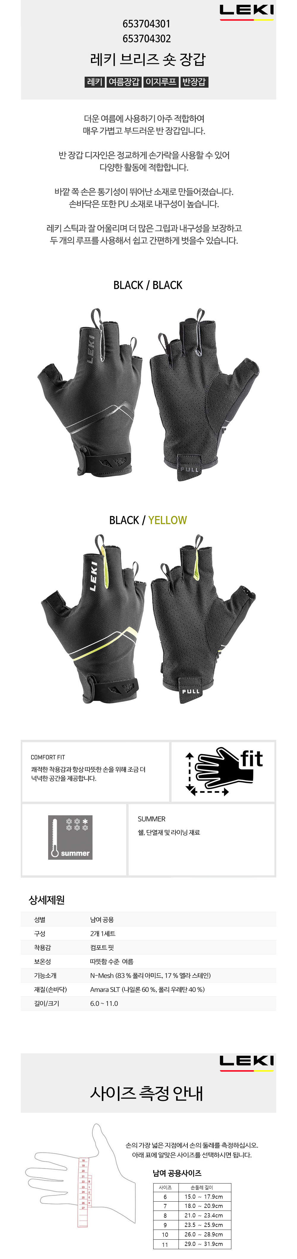 브리즈 숏 등산용 반장갑 - 블랙/블랙