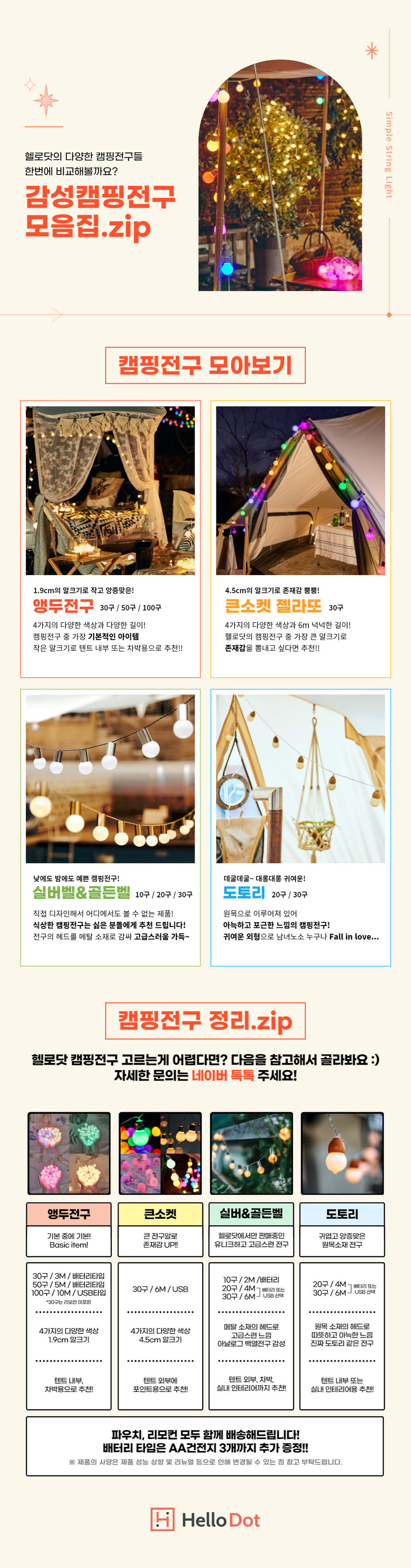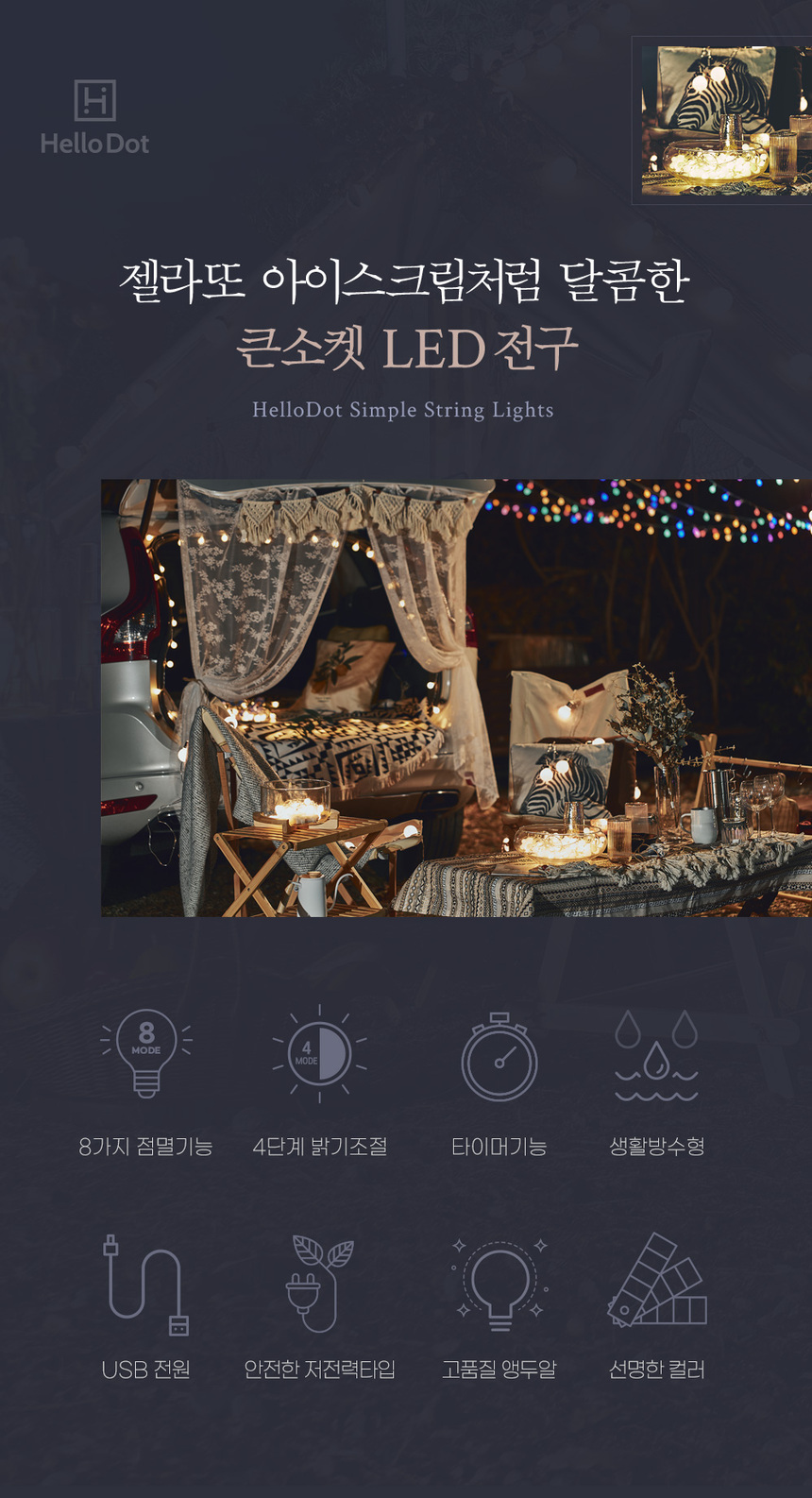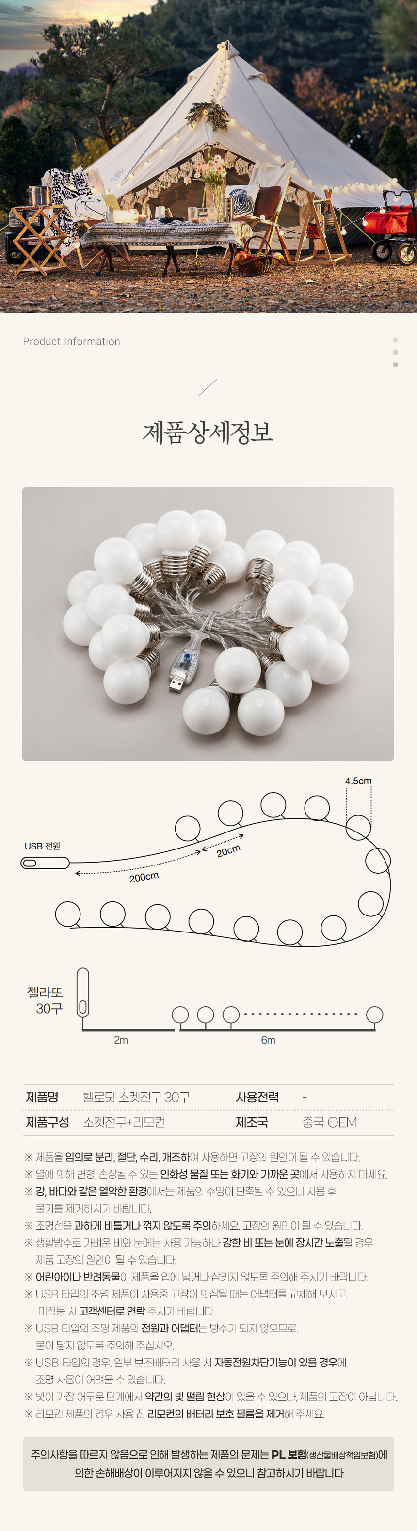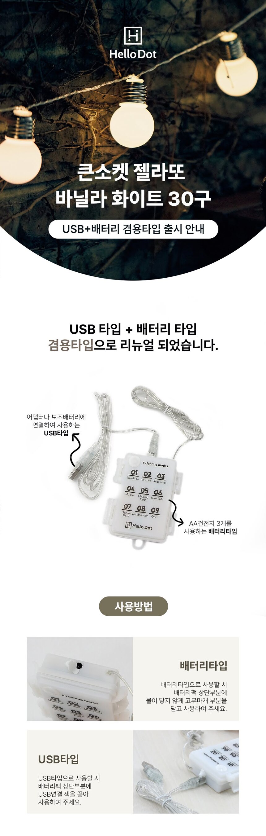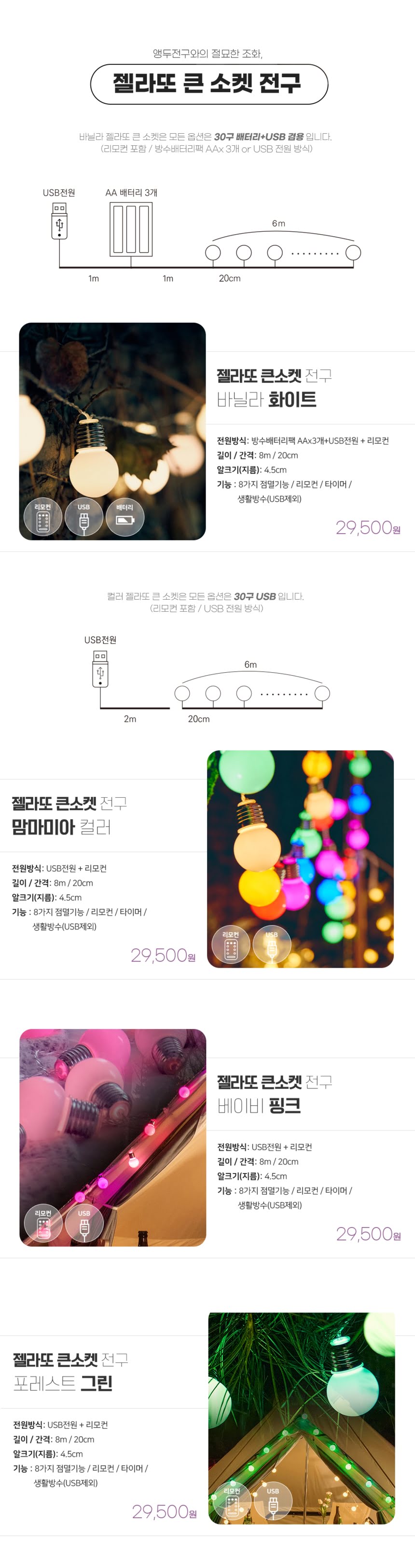 젤라또 큰소켓 LED 전구 AA배터리/USB겸용 리모컨 30구 6M 맘마미아 컬러
