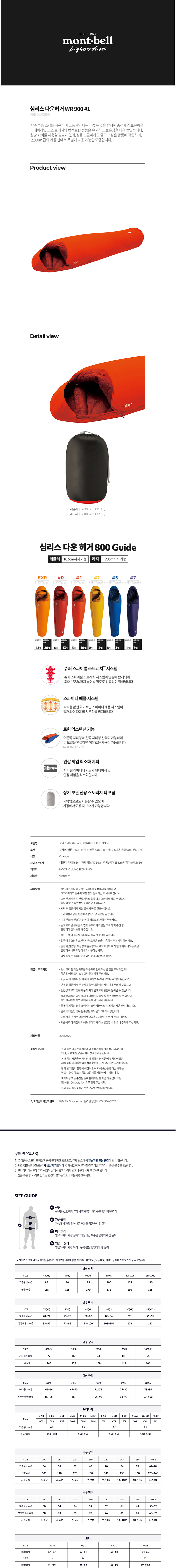 심리스 다운허거 WR 900 #1 경량침낭