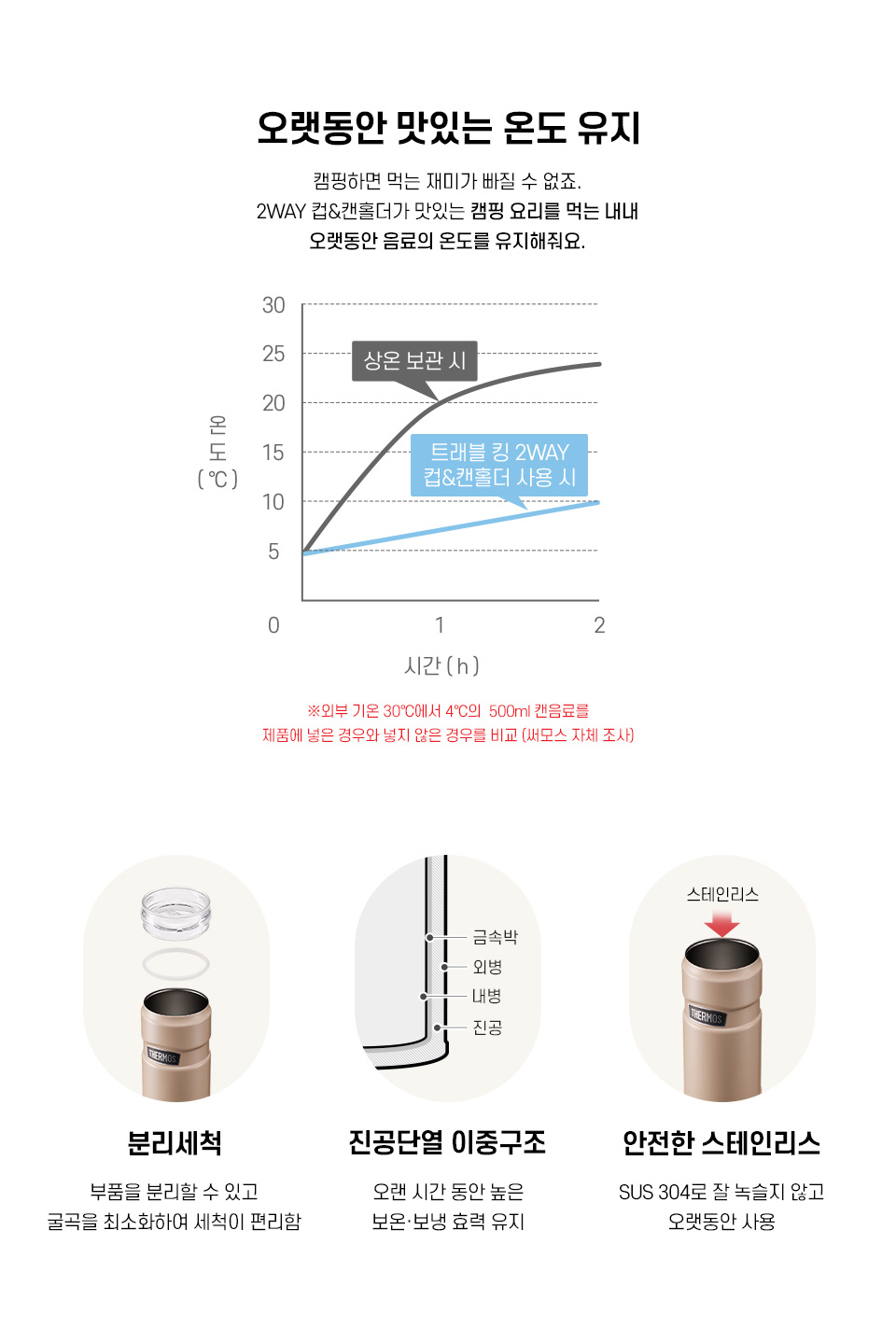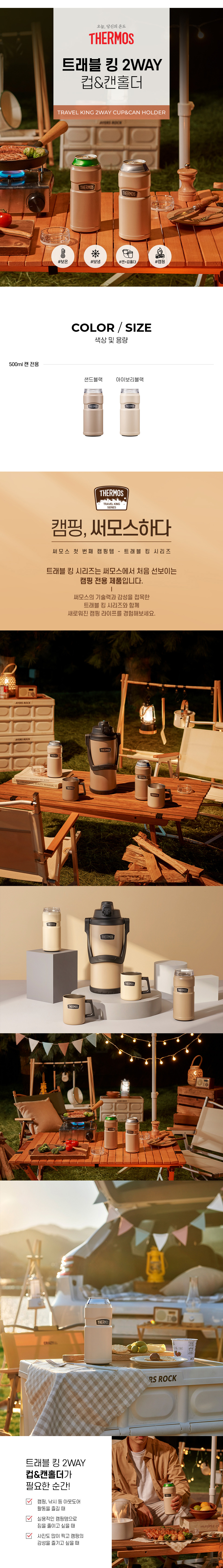 트래블 킹 2WAY 컵&캔홀더 500ml - 아이보리블랙