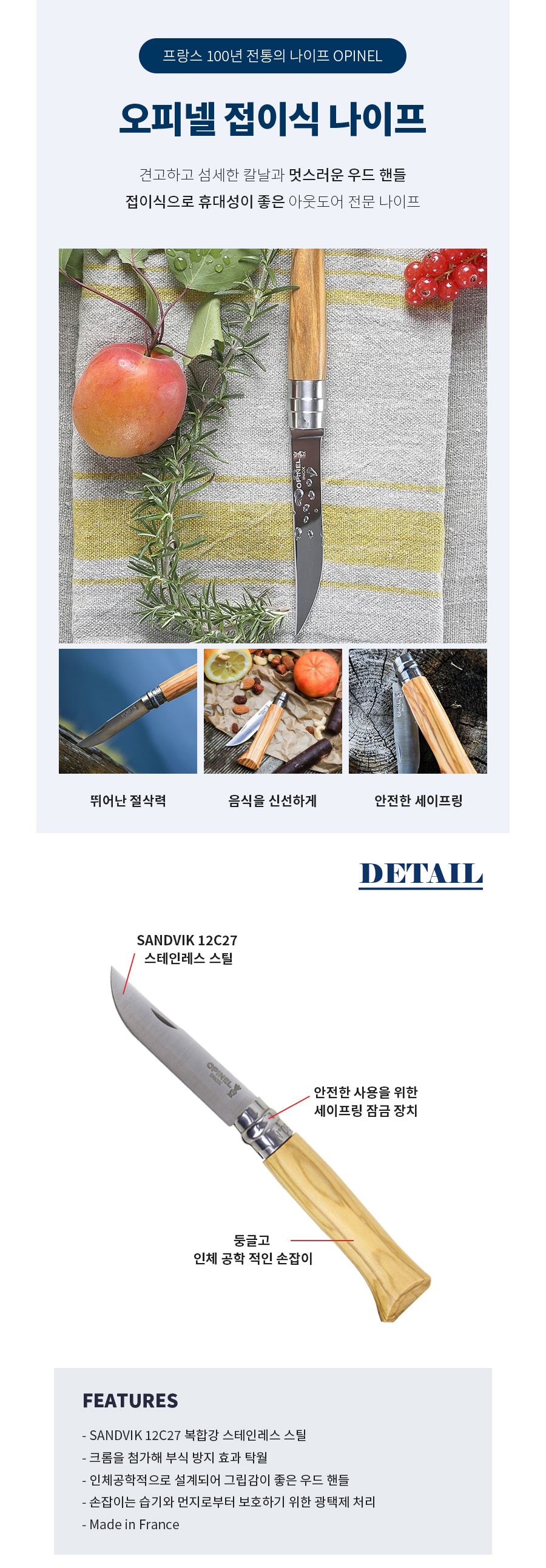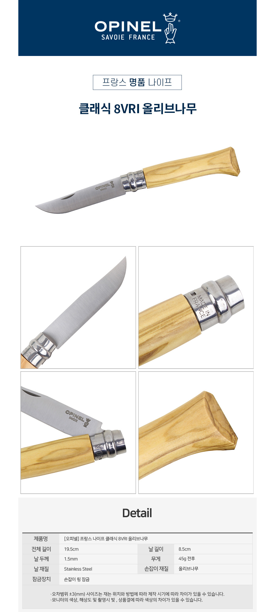 클래식 8 올리브나무 폴딩나이프