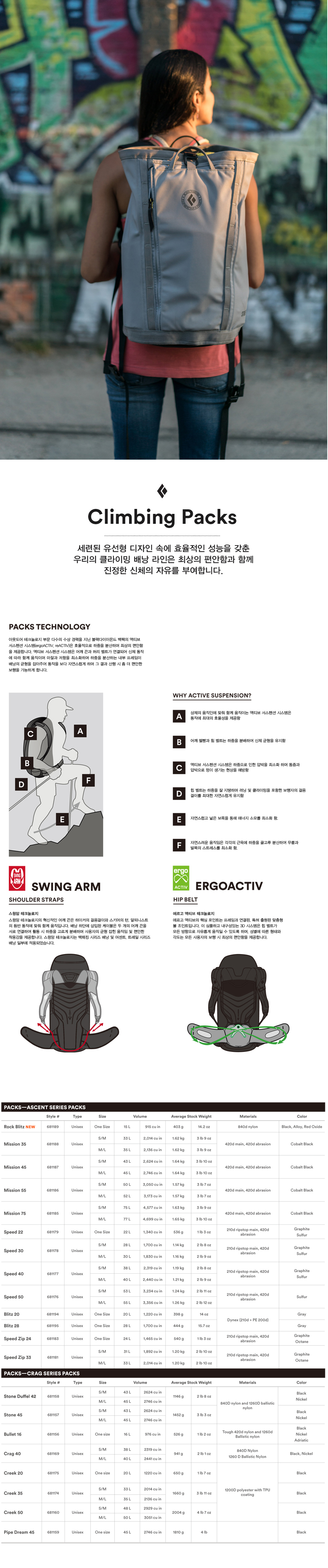 용량 별 3 가지 사이즈로 구분되어 등반 활동에 따른 최적의 선택이 가능하다.