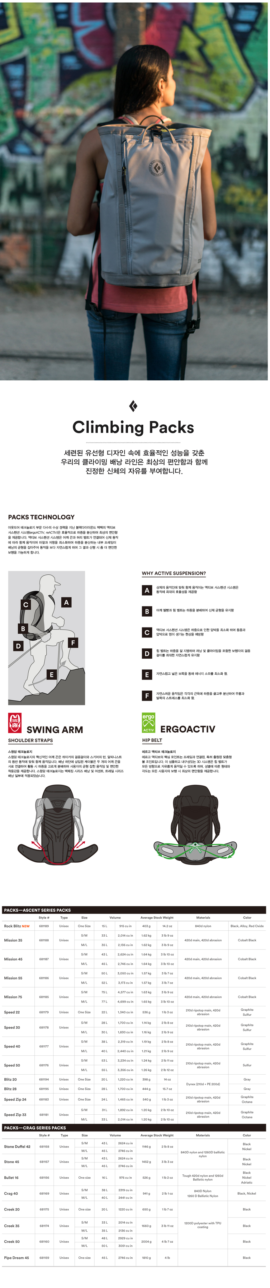 많은 장비를 필요로 하는 피치 등반이나 레드 포인트 등반을 위한 준비까지,  탑-로딩 방식의 블랙 다이아몬드 크릭 50 배낭은 최대한의 짐을 수납할 수 있다.