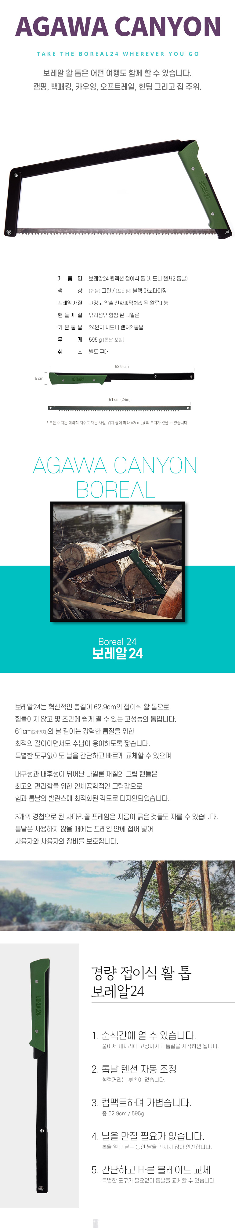 보레알24 캠핑 아웃도어용 원액션 접이식 톱 (그린/블랙, 시드니 랜처2 톱날)