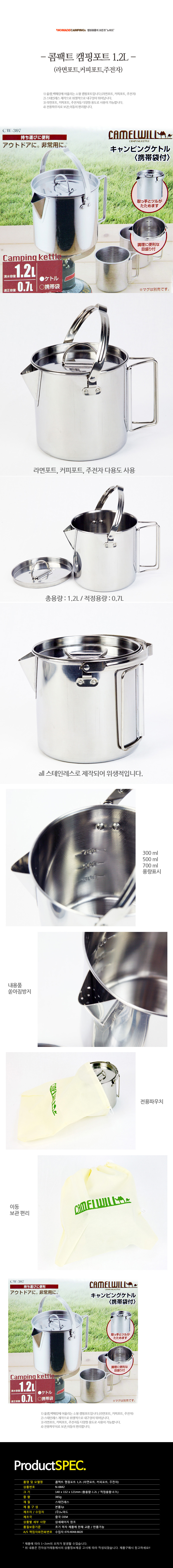 콤팩트 캠핑포트 1.2L(라면포트,커피포트,주전자)