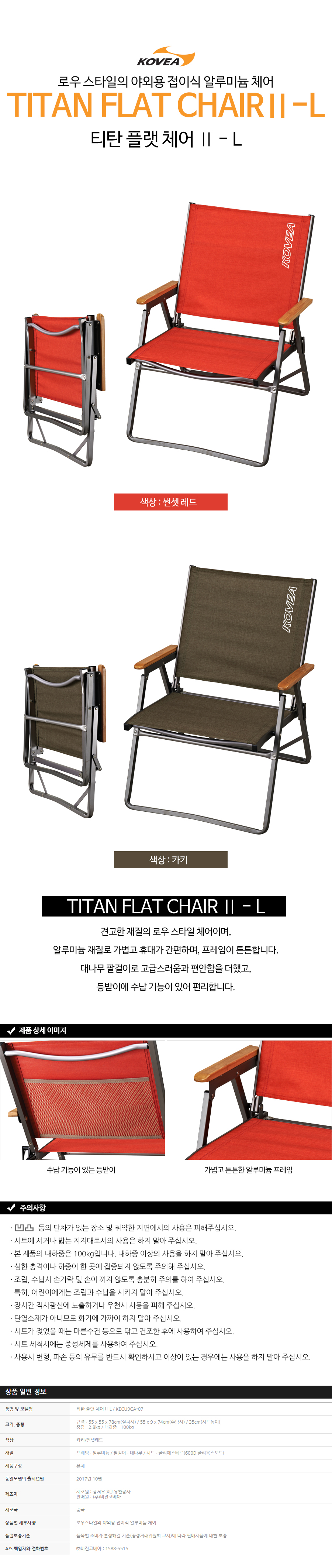 티탄 플랫 체어2 L - 카키