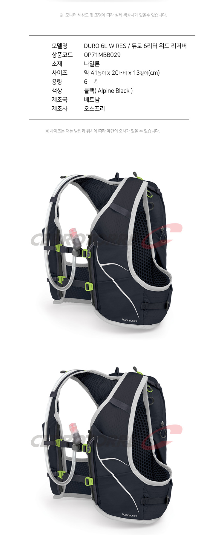 듀로 6L with 리저버 남성용 물백