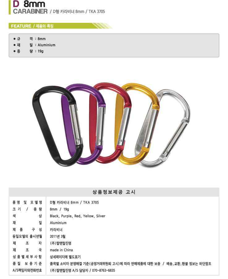 D형 카라비너 8mm