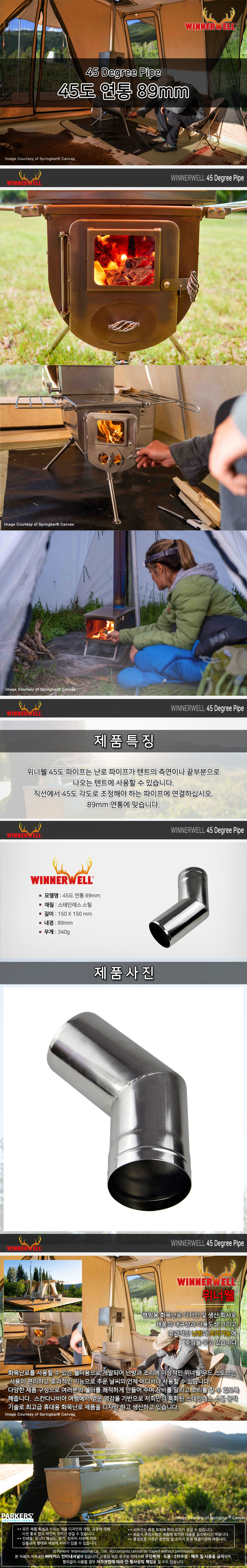 > 캠핑용 화목난로 전용 스테인레스 45도 연통 89mm