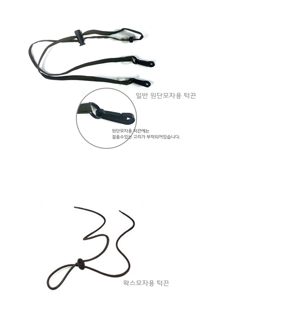 모자에 따라서 부착하는 턱끈도 다릅니다.