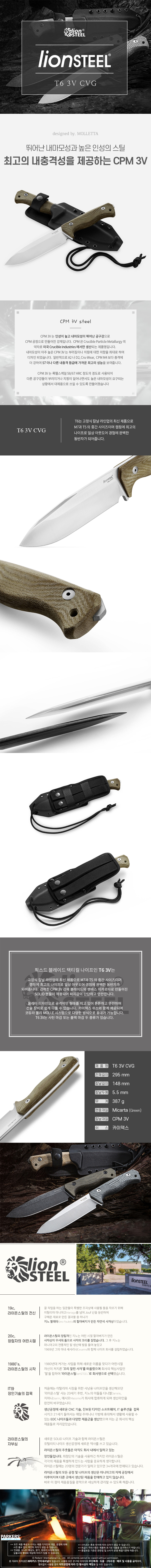 > T6 나이프 CPM-3V 강재 그린 캔바스 미카르타 핸들 부시크래프트 캠핑 칼