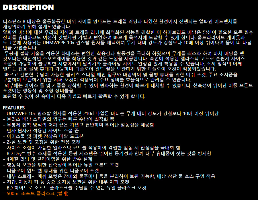 디스턴스 8 배낭 - Black