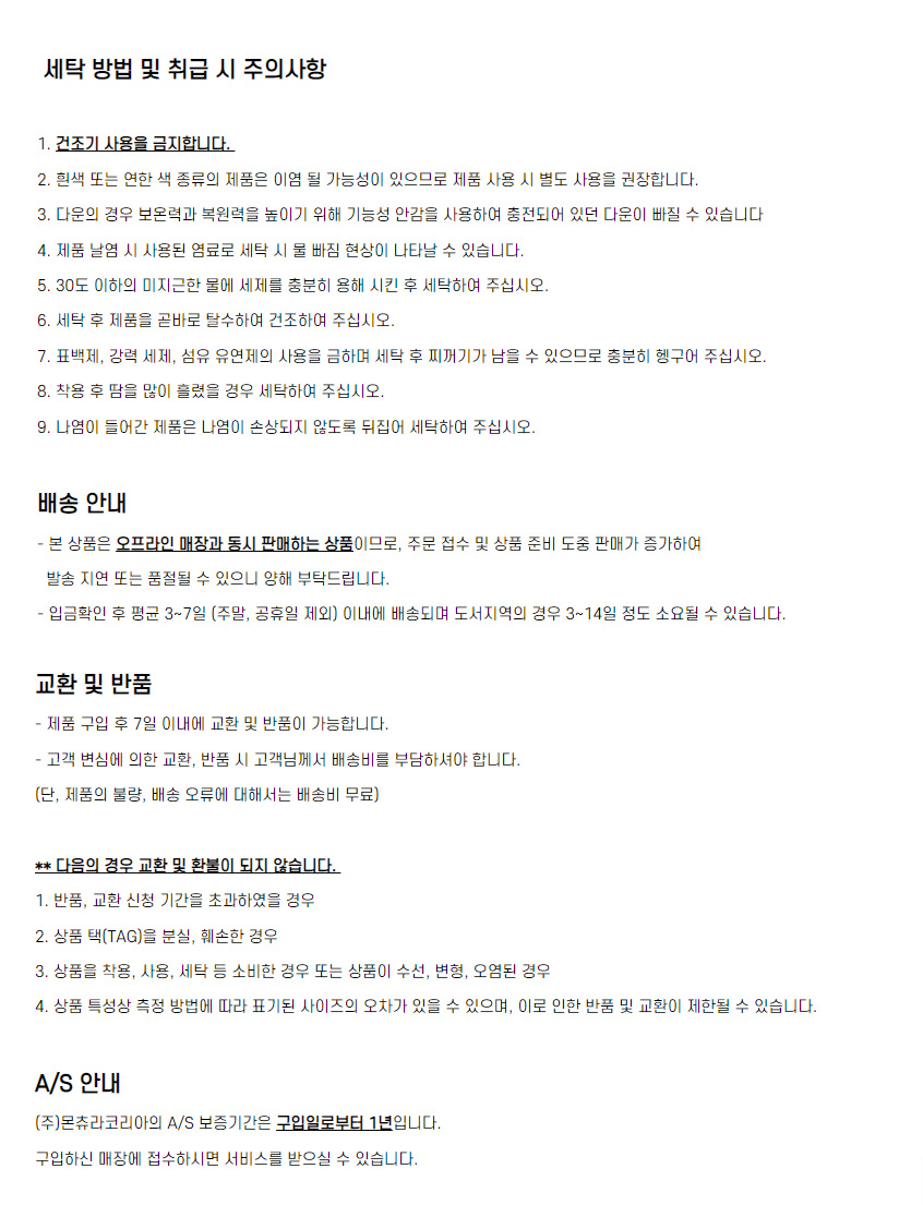 ※ 상품사이즈 치수는 재는 방법과 위치에 따라 1~3cm 오차가 있을 수 있습니다.
