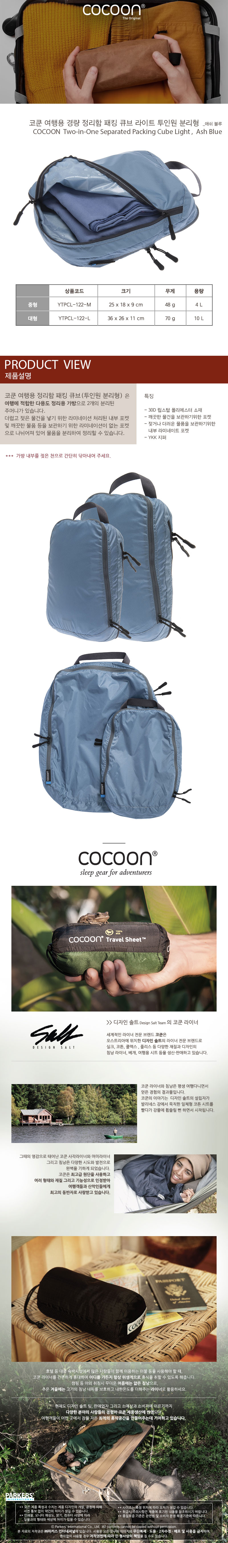 > 휴대용 경량 다용도 정리함 여행용 패킹 큐브 라이트-투인원 분리형 애쉬 블루 (L_대형)