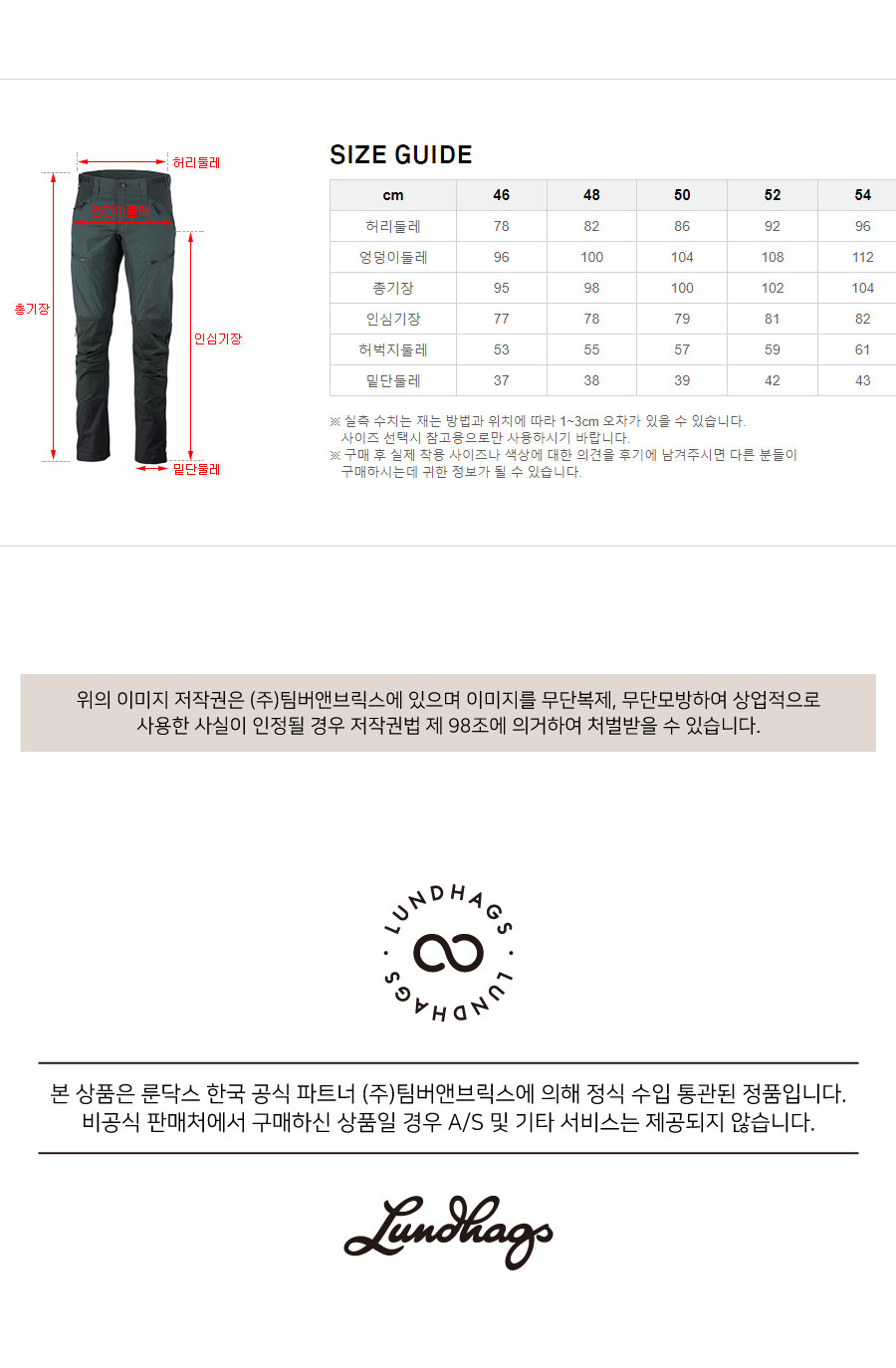 Item size chart 사이즈 기준표