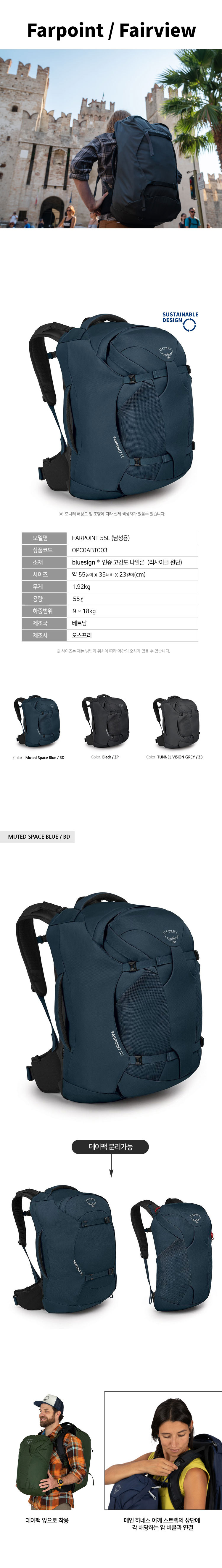 > 파포인트 55L 남성용 - Muted Space Blue
