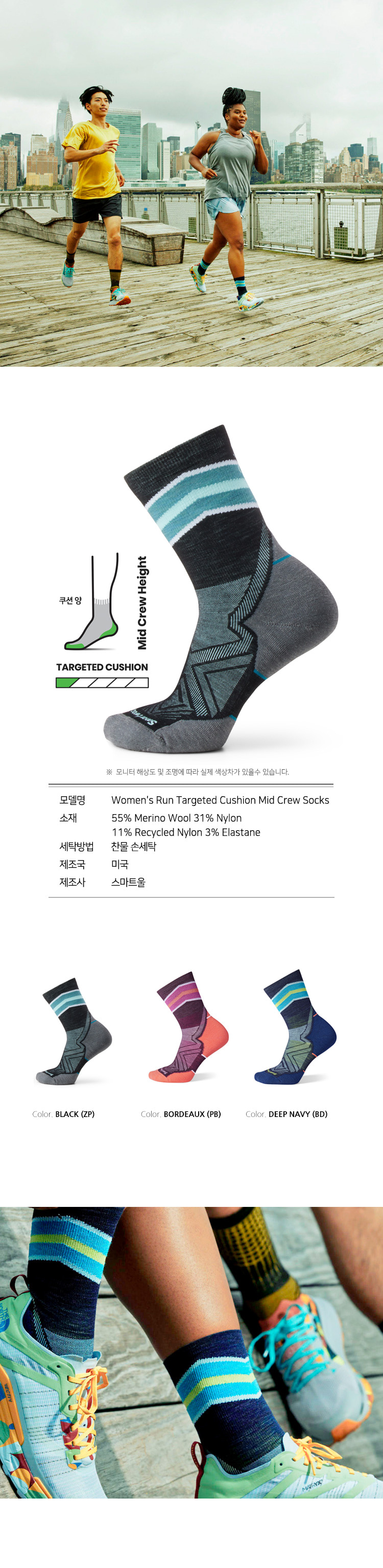> W Run Targeted Cushion Mid Crew Socks 여성 양말 / 등산양말 - BLACK