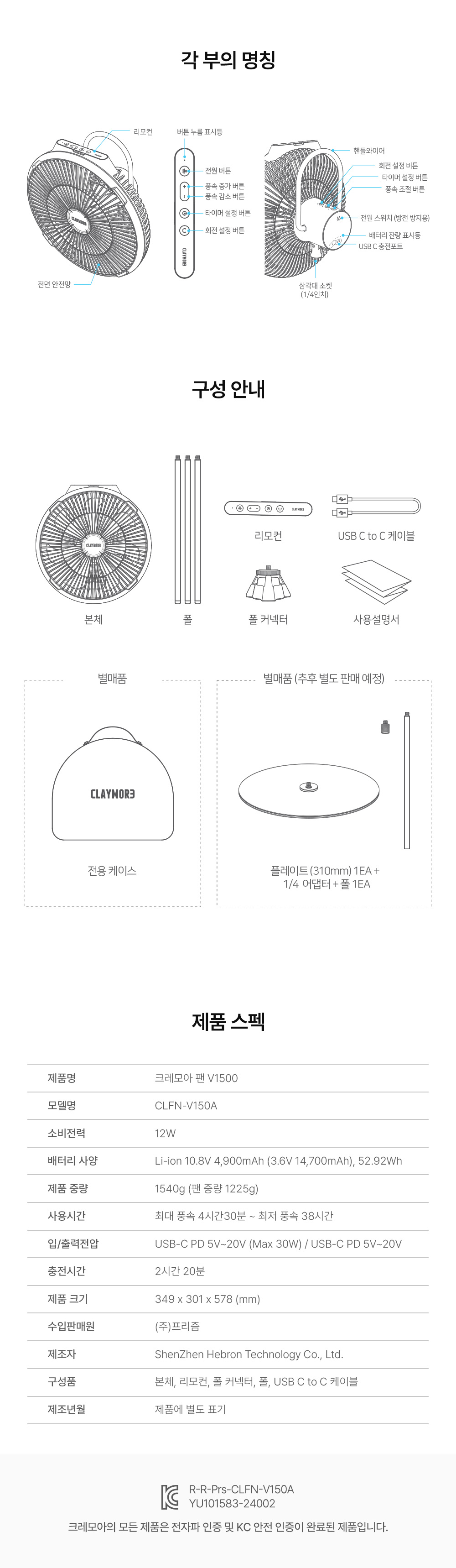 V1500 무선 캠핑 선풍기 써큘레이터 8월 1주차 재입고 예정