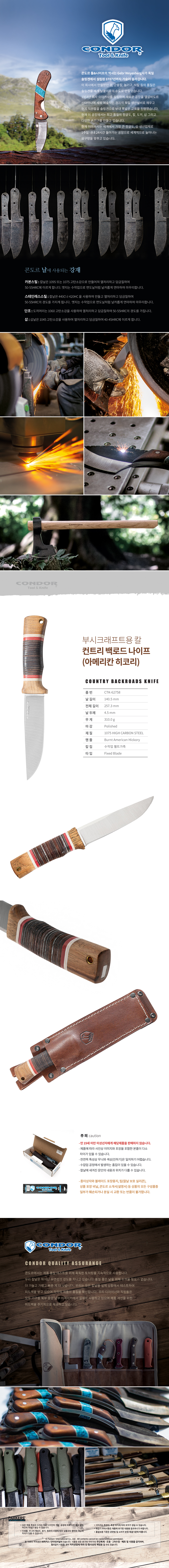부시크래프트 캠핑용 칼 컨트리 백로드 나이프 (1075 탄소강/아메리칸 히코리핸들)